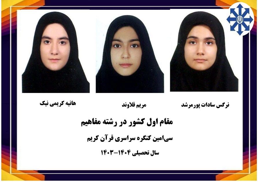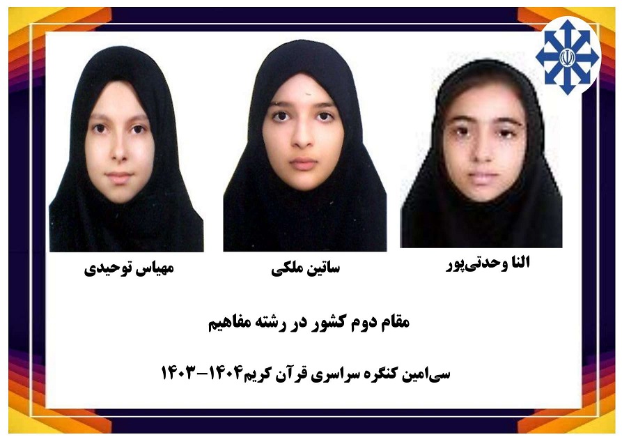 با کمال مسرت و افتخار، کسب مقامهای برتر توسط دانشآموزان توانمند دبیرستان دوره اول فرزانگان دزفول در مسابقات قرآن، عترت